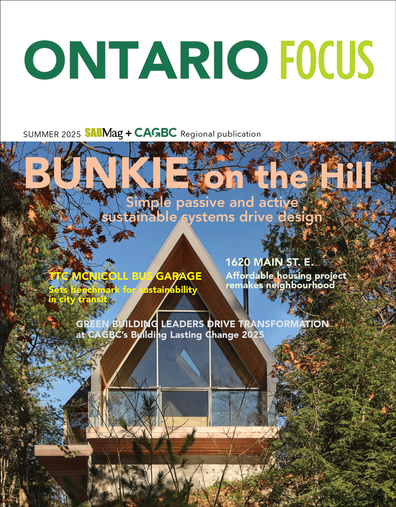 The Ontario FOCUS Summer issue features the TTC McNicoll Bus Garage which has a large SolarWall to reduce fossil fuel heating and a massive vegetated roof. The issue also contains the latest on the ZCB Design standard, the Bunkie House with mechanical and electrical systems completely integrated with passive design strategies, and the six-storey CityHousing Hamilton project which has achieved Passive House certification.