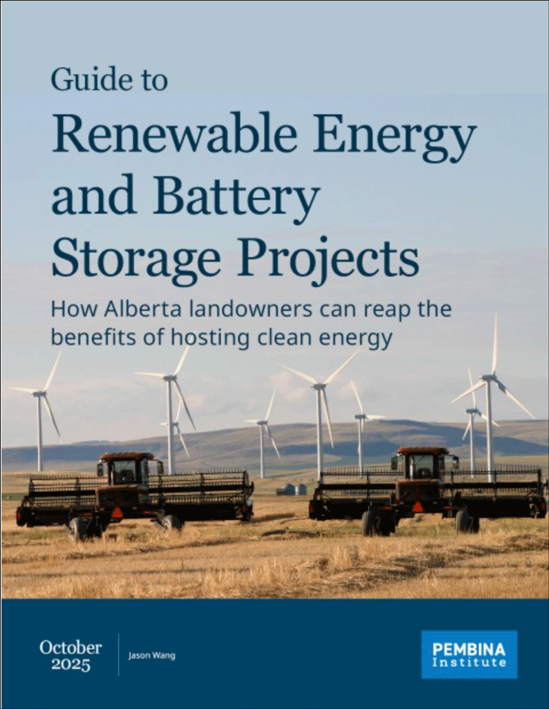 New guide offers tips to landowners considering clean energy projectsA just-released guide from the Pembina Institute, Guide to Renewable Energy and Battery Storage Projects, covers everything from basics about renewables to thoughts on how to help maximize benefits and minimize impacts. There’s a section for municipalities on how they can get involved in renewable energy development. And to wrap it all up, there are lists of questions on a variety of topics that offer solid starting points for conversations with developers proposing projects. Get the Guide.